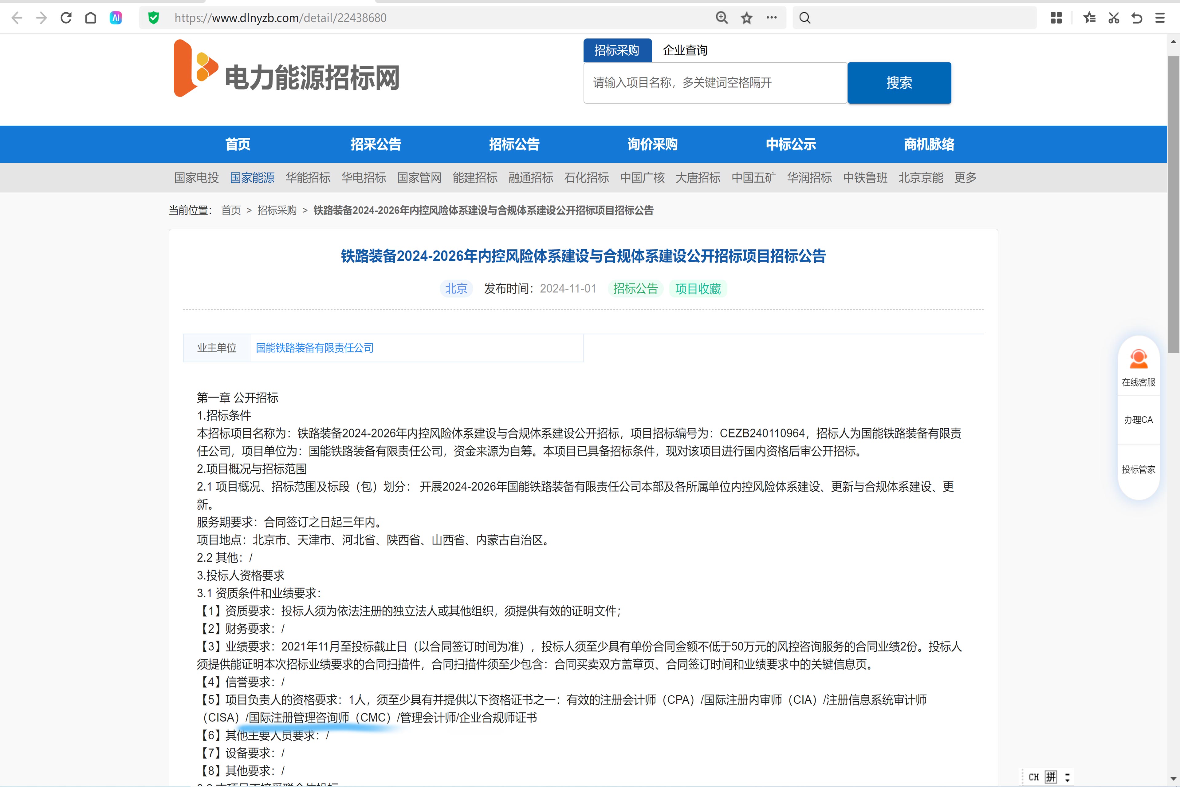 中广核新能源培训公司采购高级岗位资格培训课程采购项目项目询比采购成交结果公示明确要求提供CMC协会/国际咨询协会的CMC资格“培训讲师具有国际注册咨询师或同等资质认证”。